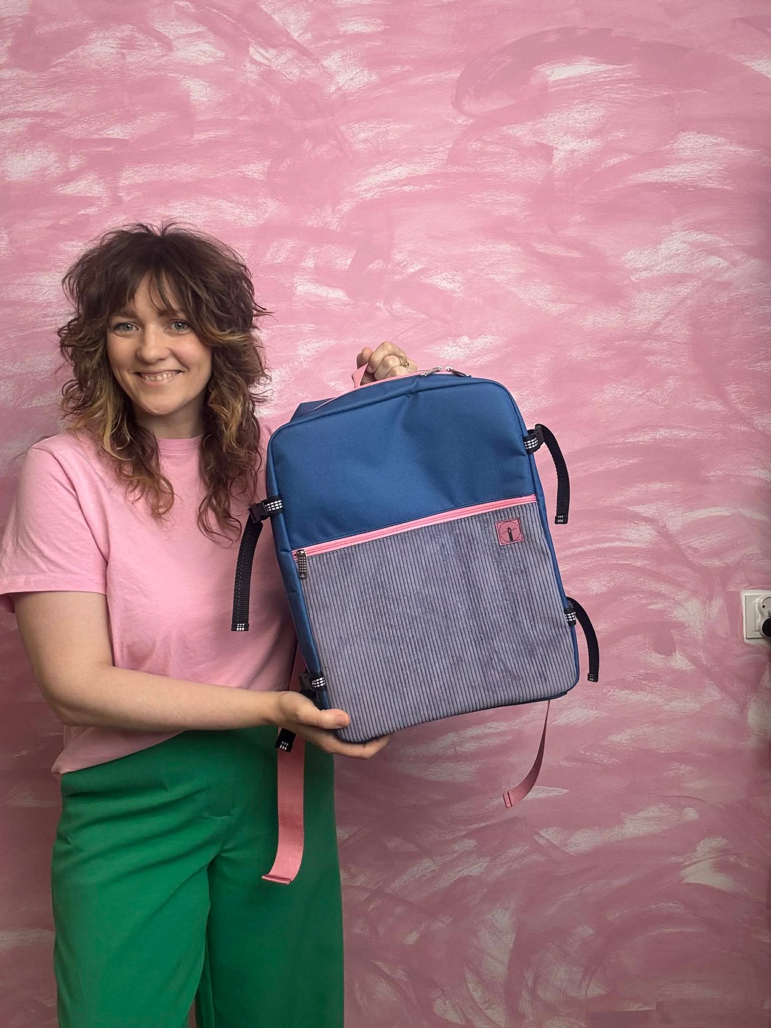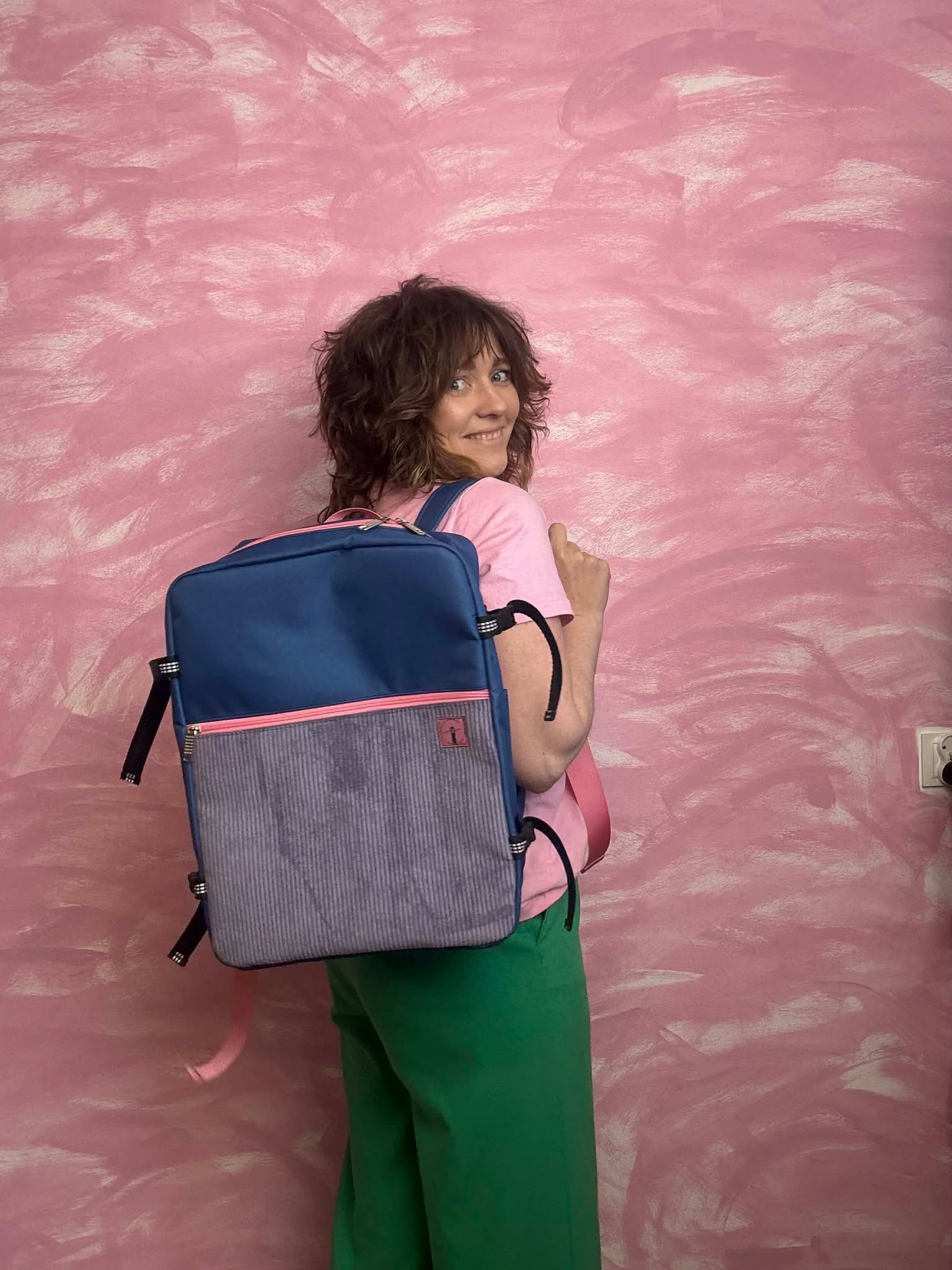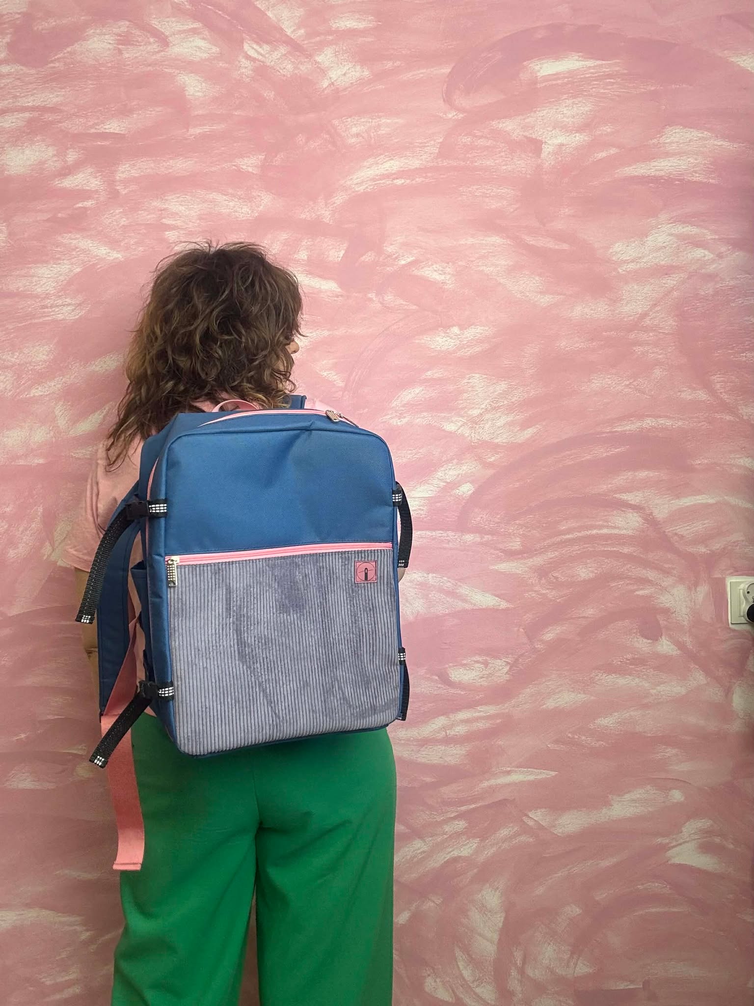 – ma z tyłu na plecach specjalny uchwyt do noszenia wygodniej na walizce